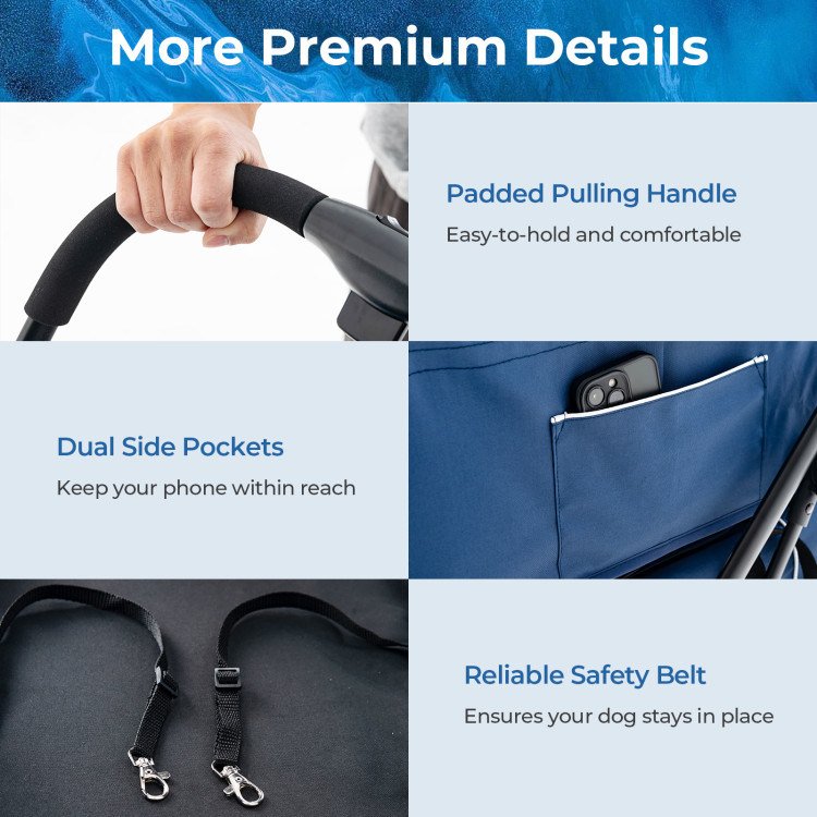• 4 Wheels Extra Large Dog Stroller Foldable Pet Stroller with Dual Entry